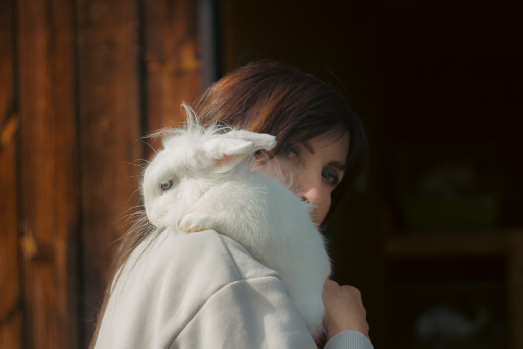 Grażyna Tarasińska z królikiem Loulou